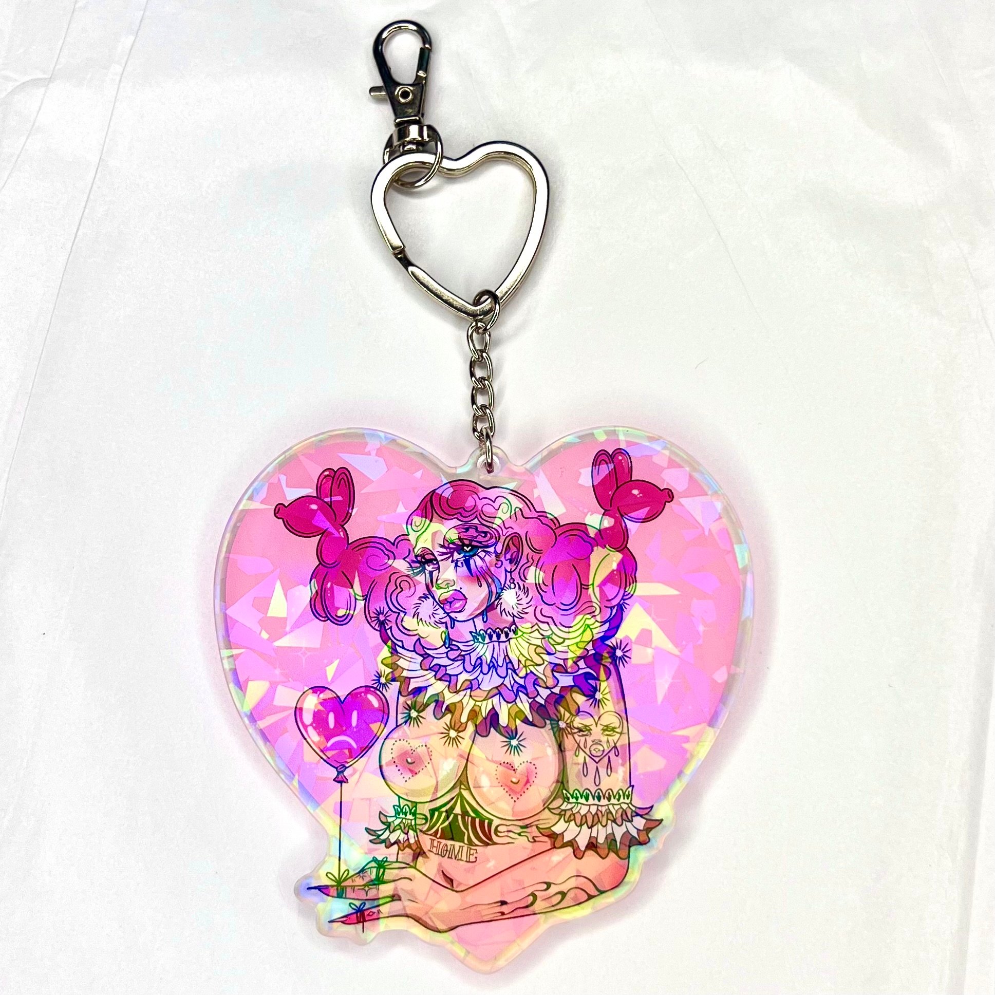 Jumbo pretty in pink clown babe holographic keychain