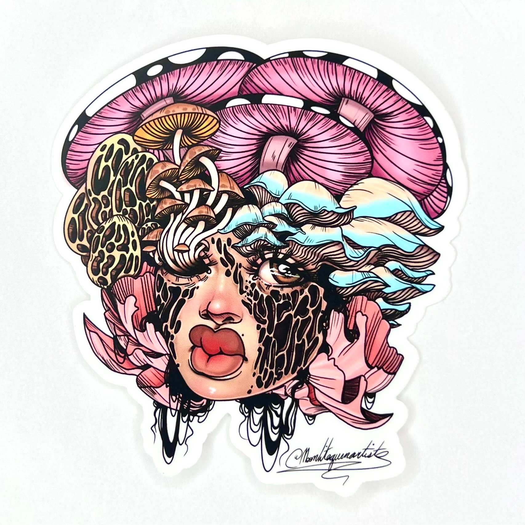 Madre de Los Hongos vinyl sticker. 3.7 x 4 inches. All of my stickers are weatherproof, water proof and scratch proof.