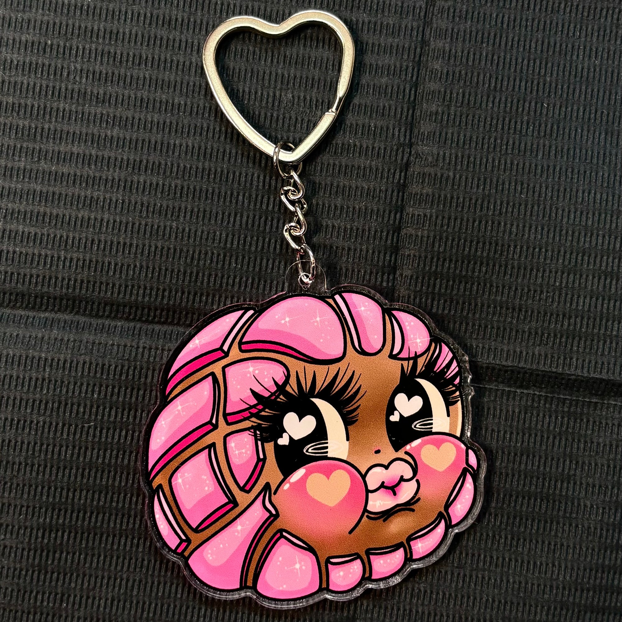 Pink concha kewpie keychain