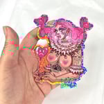 Pretty in pink clown babe holographic glitter sticker. 3.5 x 4.3 inches. All of my stickers are weatherproof, water proof and scratch proof.